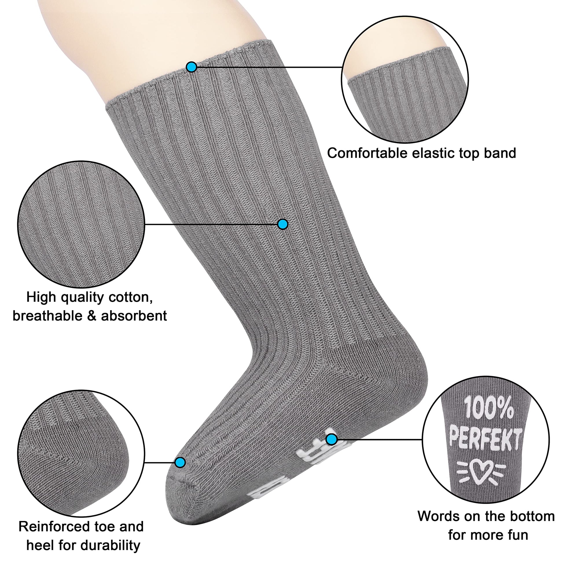 Belloxis Baby Socks (4 Pairs): Fun Text Prints & Non-Slip | For Babies 0-12 Months