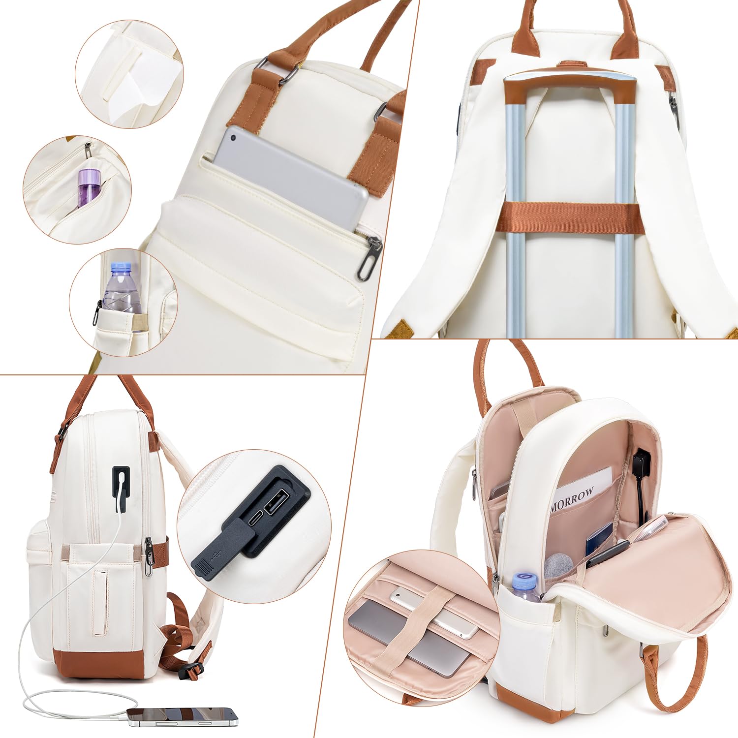 COOLIFE hard-shell travel suitcase set (5 pieces): ABS, 4 wheels, TSA lock | White-brown