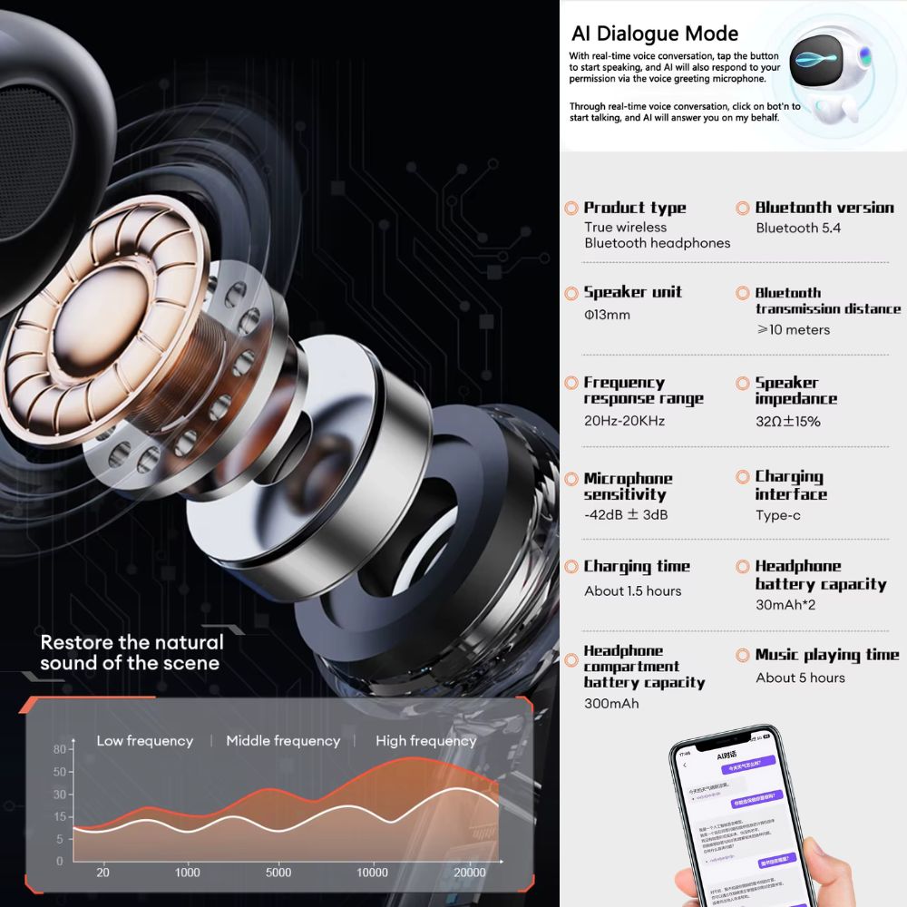 Simultaneous translation & face-to-face mode : Ideal for direct conversations or meetings. The AI analyzes speech in real time and outputs the translation directly through the earphones.