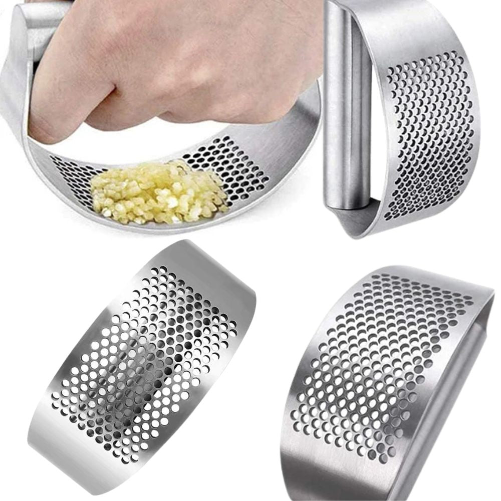 Manual Stainless Steel Garlic Press | Crusher for Garlic & Ginger, Kitchen Helper with Set