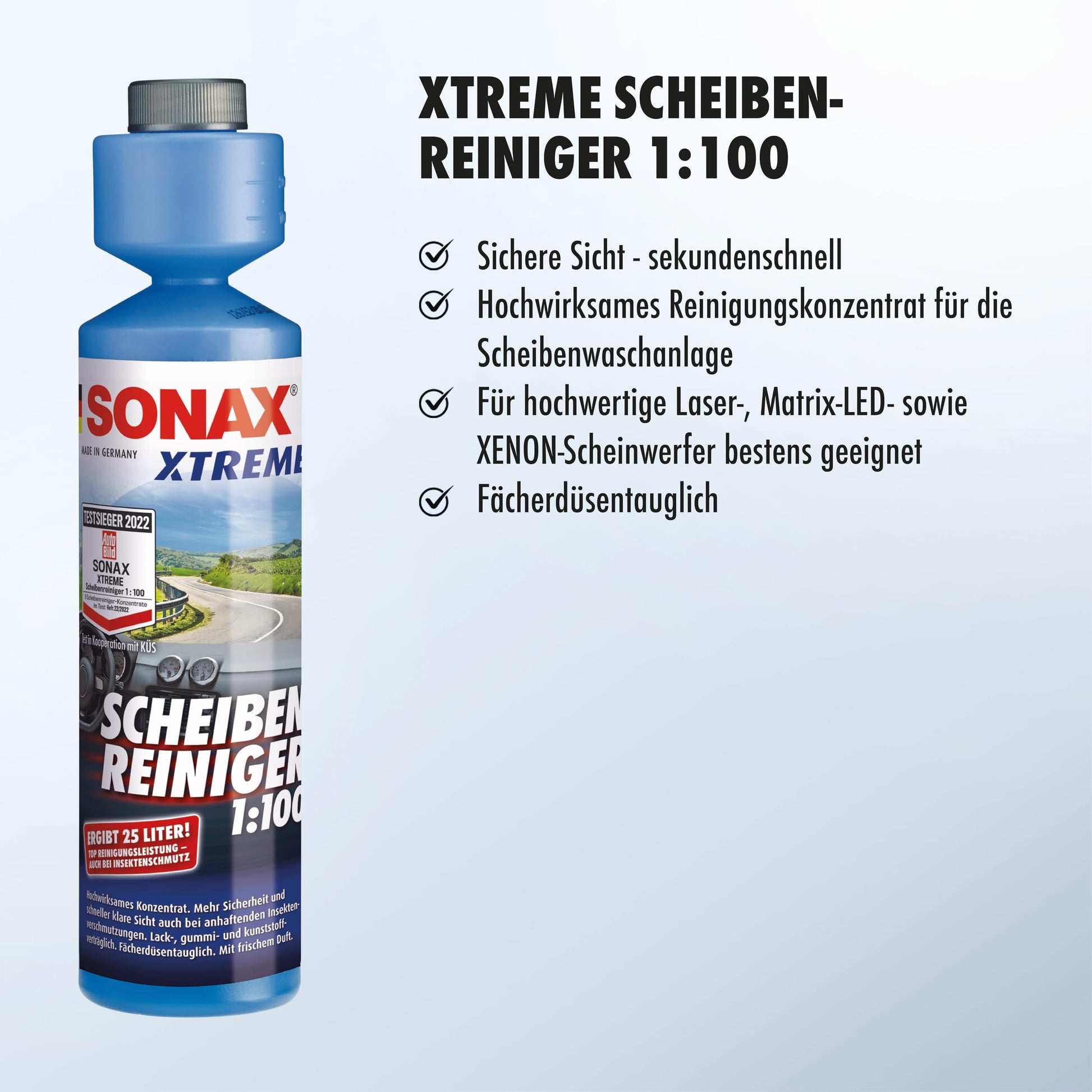 SONAX XTREME windscreen cleaner 1:100 (250ml) makes 25 liters of cleaning fluid for clear visibility