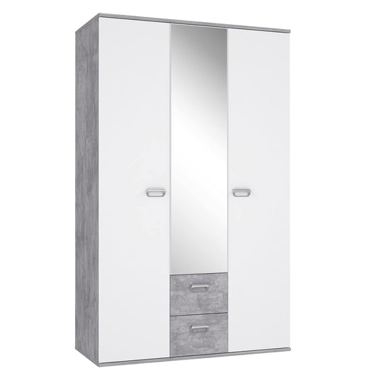 Kleiderschrank 'EMILY' mit Betonoptik und Spiegel: Lichtgrau mit Weiß (Modell: EMLS95-C251)