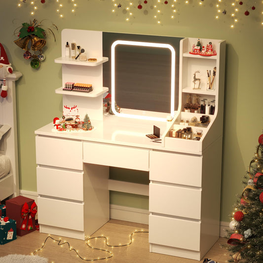 TRIUMPHKEY Schminktisch mit LED-Beleuchtung | 7 Schubladen, Touch-Spiegel