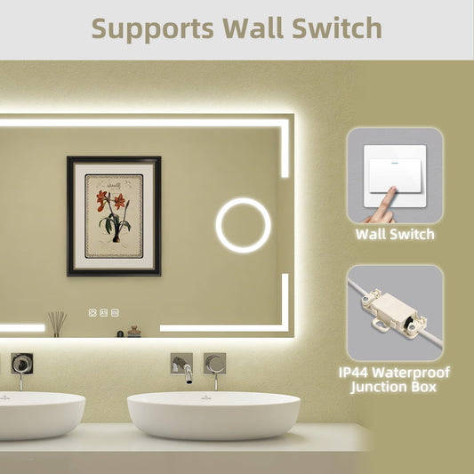 STARLEAD Badspiegel-mit-Beleuchtung 120x70cm, Badezimmerspiegel mit 5X Vergrößerungsspiegel-mit-Licht, 3 Lichtfarben, Einstellbare Helligkeit, Entfoggen, IP44 LED-Spiegel-Bad, HD Hartglas