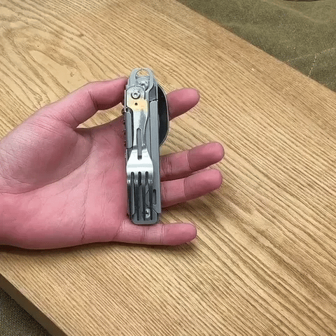 5-in-1 Multifunktions Campingbesteck: Edelstahl, Klappbar, Tragbar Preview Gif