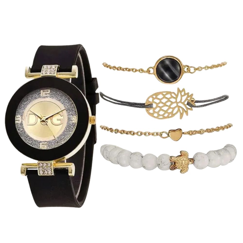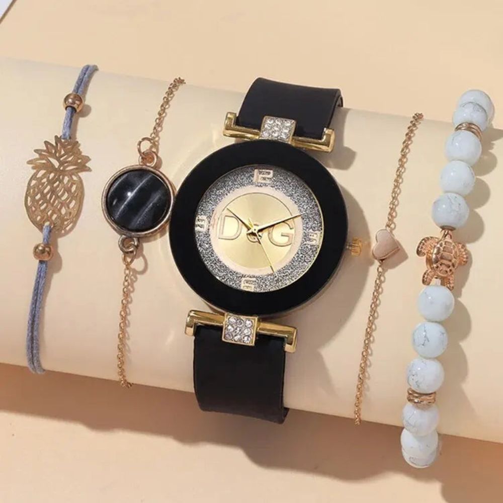 Montre à quartz pour femme 5 pièces avec ensemble de bracelets | Conception de bracelets haut de gamme