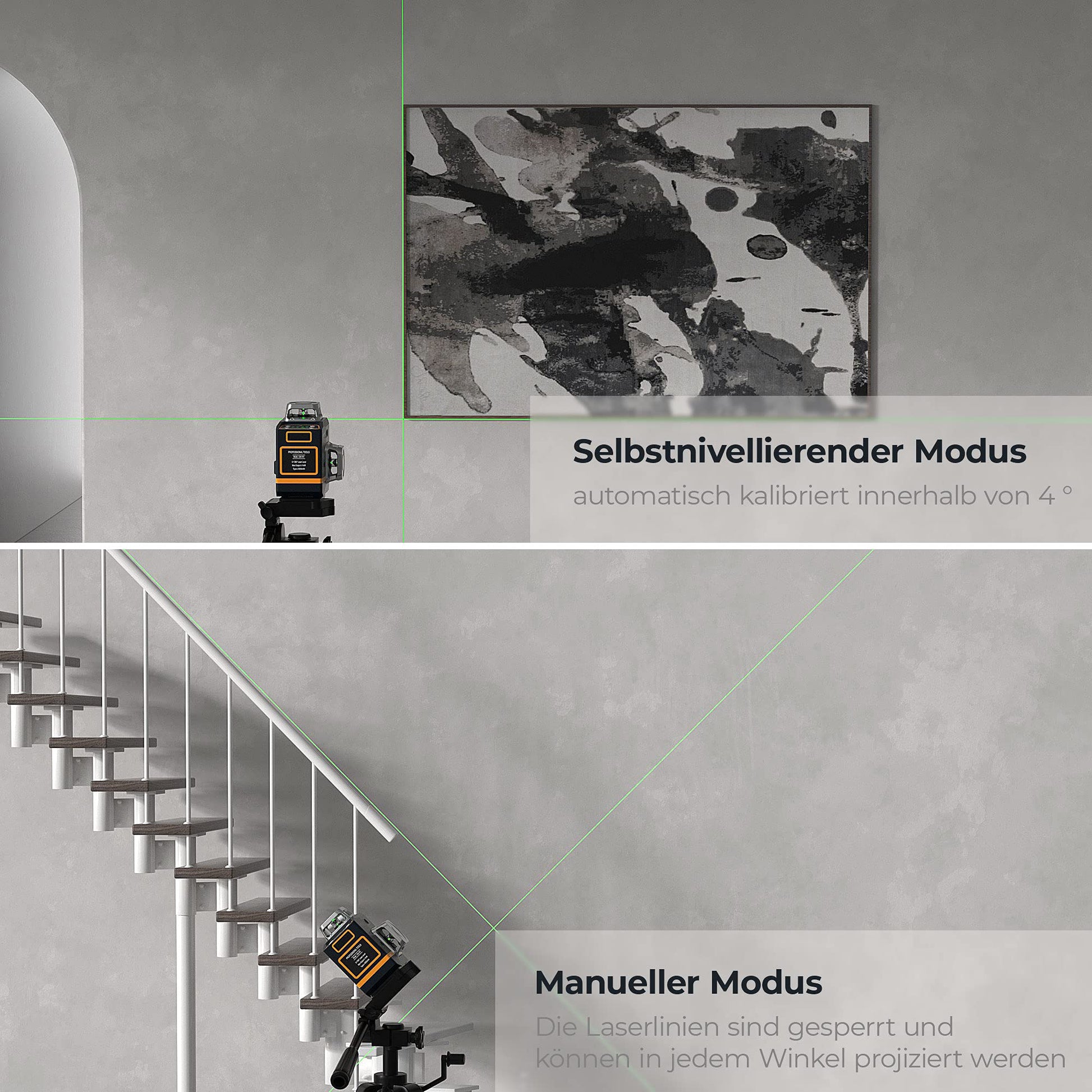 - Automatikmodus: Selbstnivellierend bei Neigungen bis ±4°