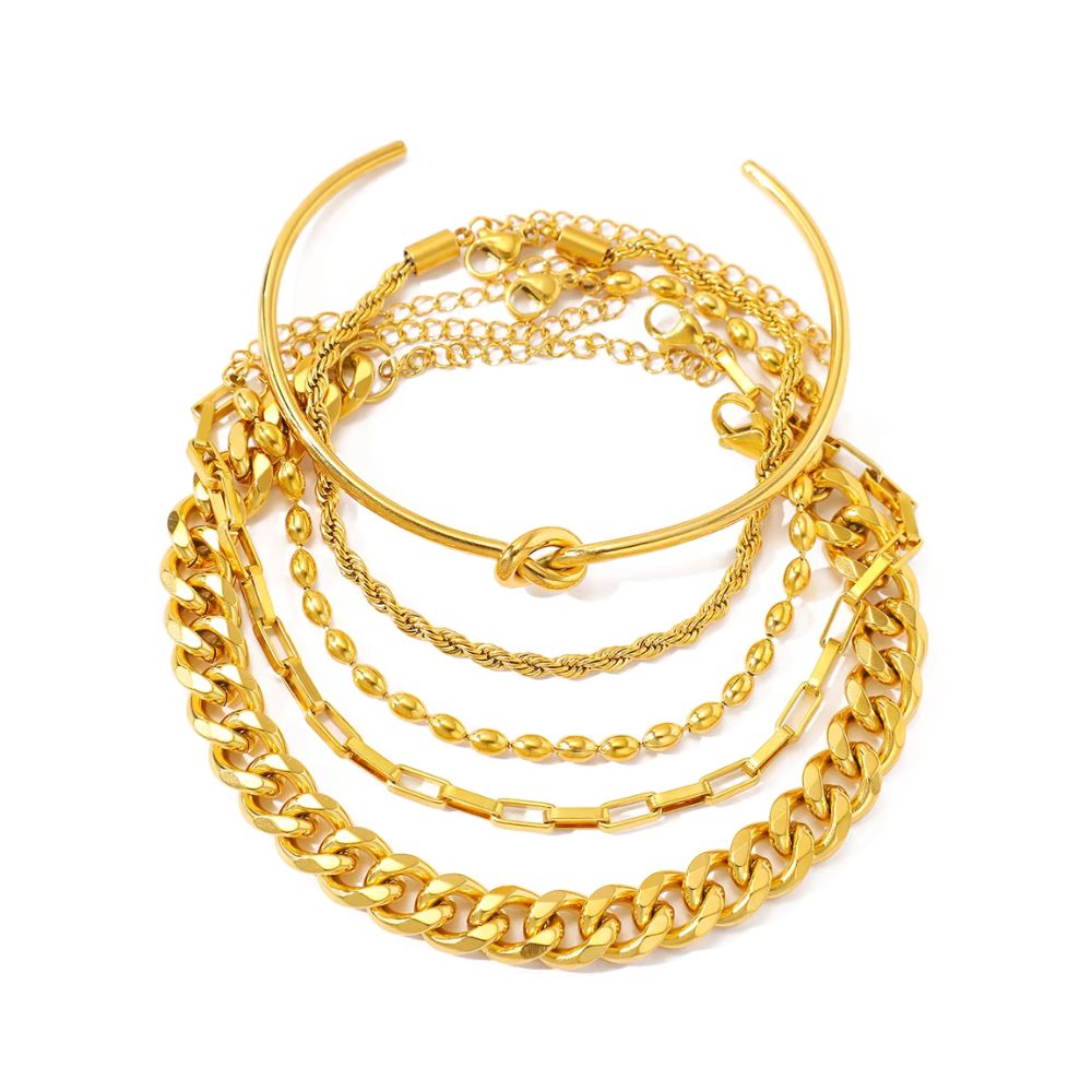 Modisches Edelstahl-Armband-Set | Luxuriöses Schmuckgeschenk für Damen (Gold)