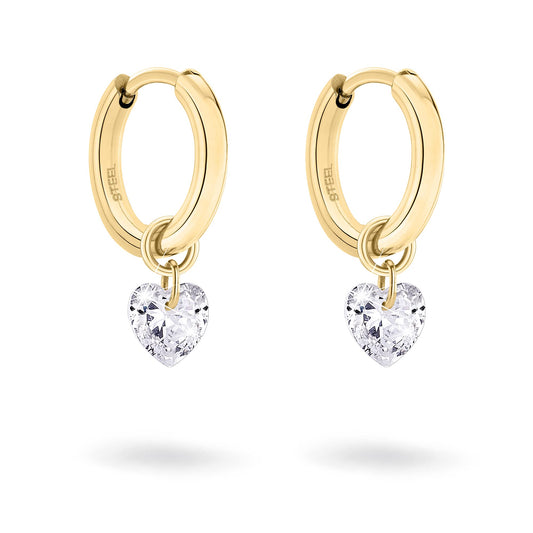 Tamaris Mini-Creolen aus Edelstahl mit Herzanhänger und Zirkoniastein