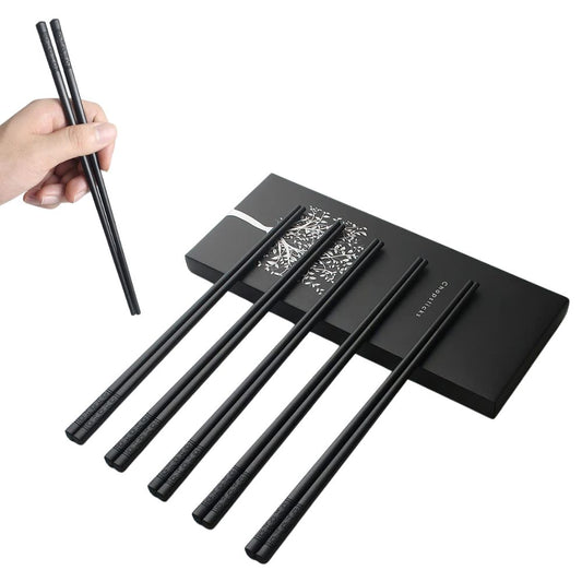 •  Japanische Fiberglas Essstäbchen: Spülmaschinenfest, Wiederverwendbare Legierung (Schwarz)