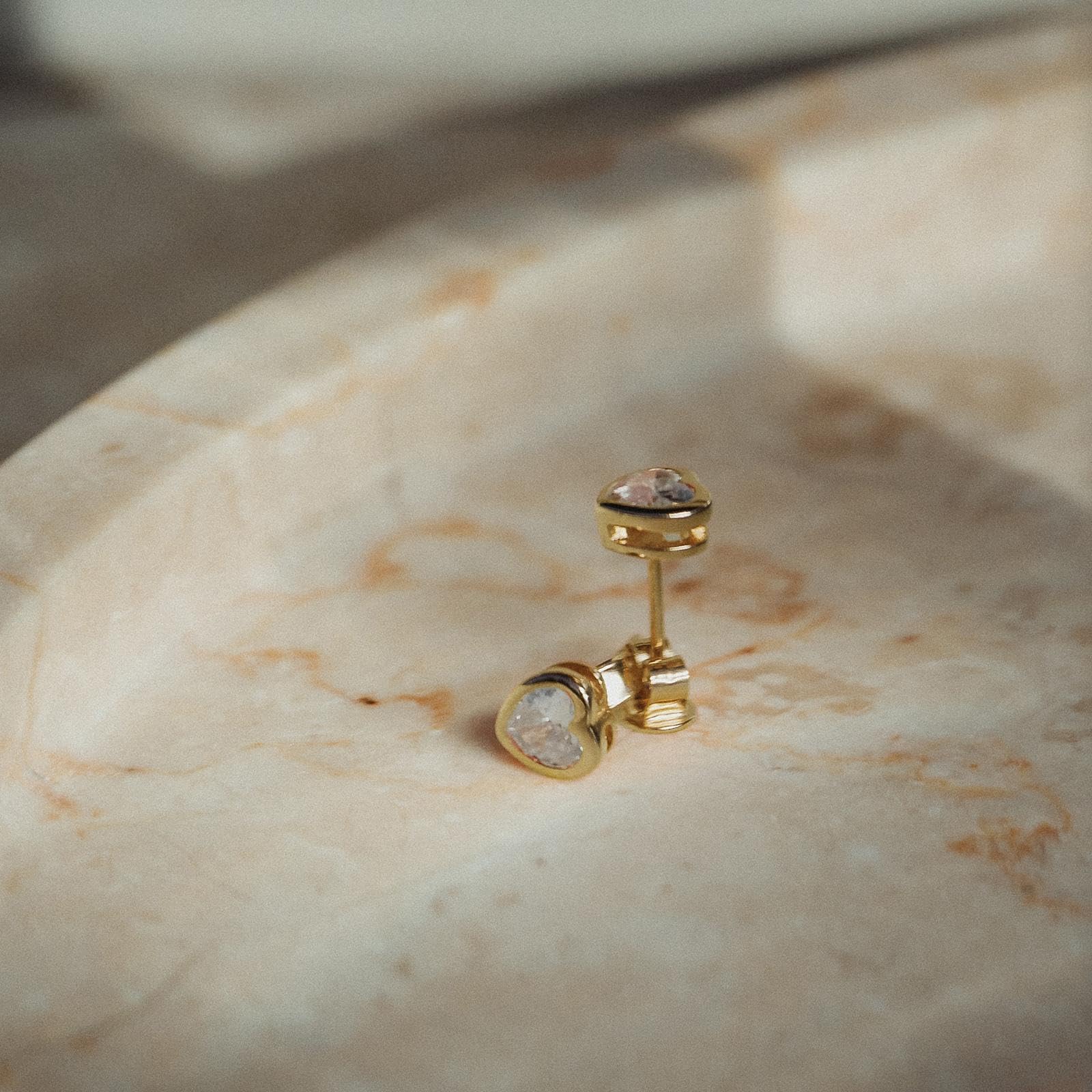 • Vergoldetes 925 Sterling Silber: Herzkette & Ohrstecker mit funkelnden Zirkonia - nickelfrei & rhodiniert für langanhaltenden Glanz