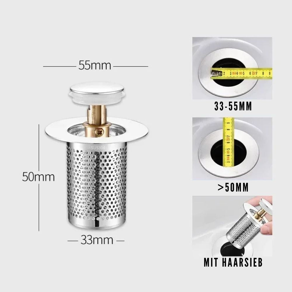 Edelstahl Pop-Up Ablaufstopfen mit Haarsieb | Anti-Verstopfungs Waschbeckenfilter (GIF2)