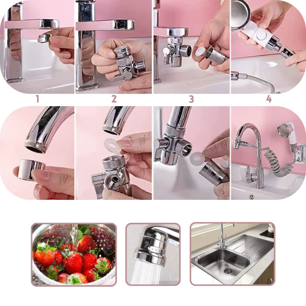 Faucet Extender-Set | Externe Duschkopf-Adapter für Waschbecken & Badarmaturen (GIF2)