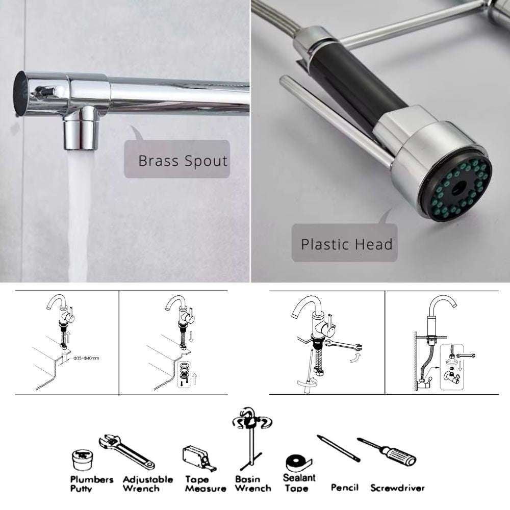 • Materialien: Armaturenkörper aus Messing, Sprühkopf aus ABS-Kunststoff