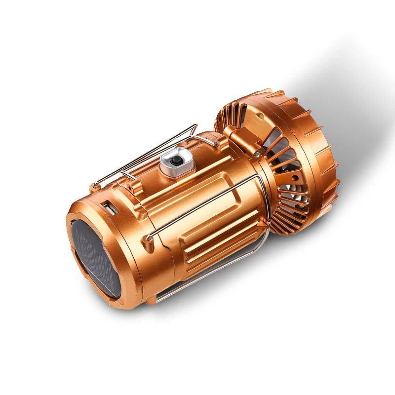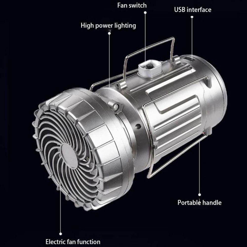 Dieses tragbare Solar Campinglicht mit integriertem Ventilator ist perfekt für alle Ihre Outdoor-Aktivitäten. Egal ob Camping, Wandern oder Notfälle - bleiben Sie jederzeit beleuchtet und verbunden.