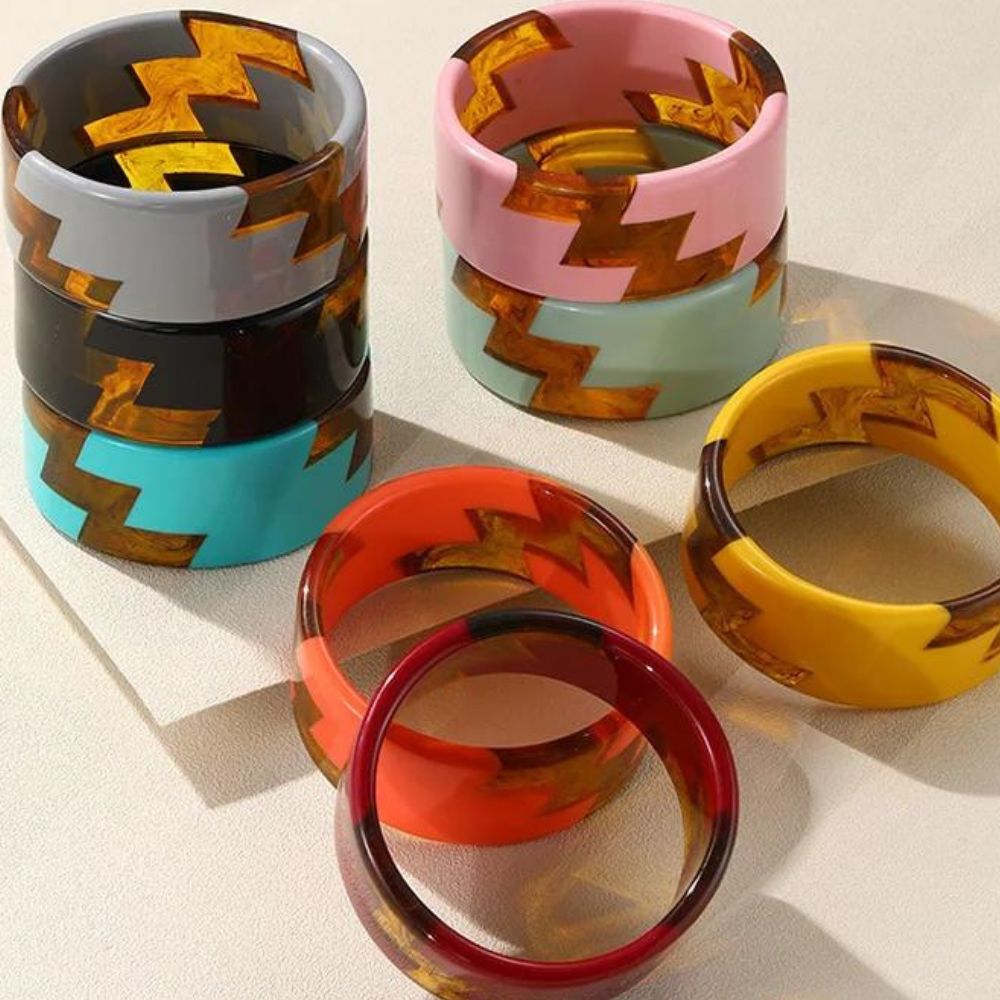 Trendige Vintage Bunte Geometrische Harz-Armbänder für Damen | 2024 Mode