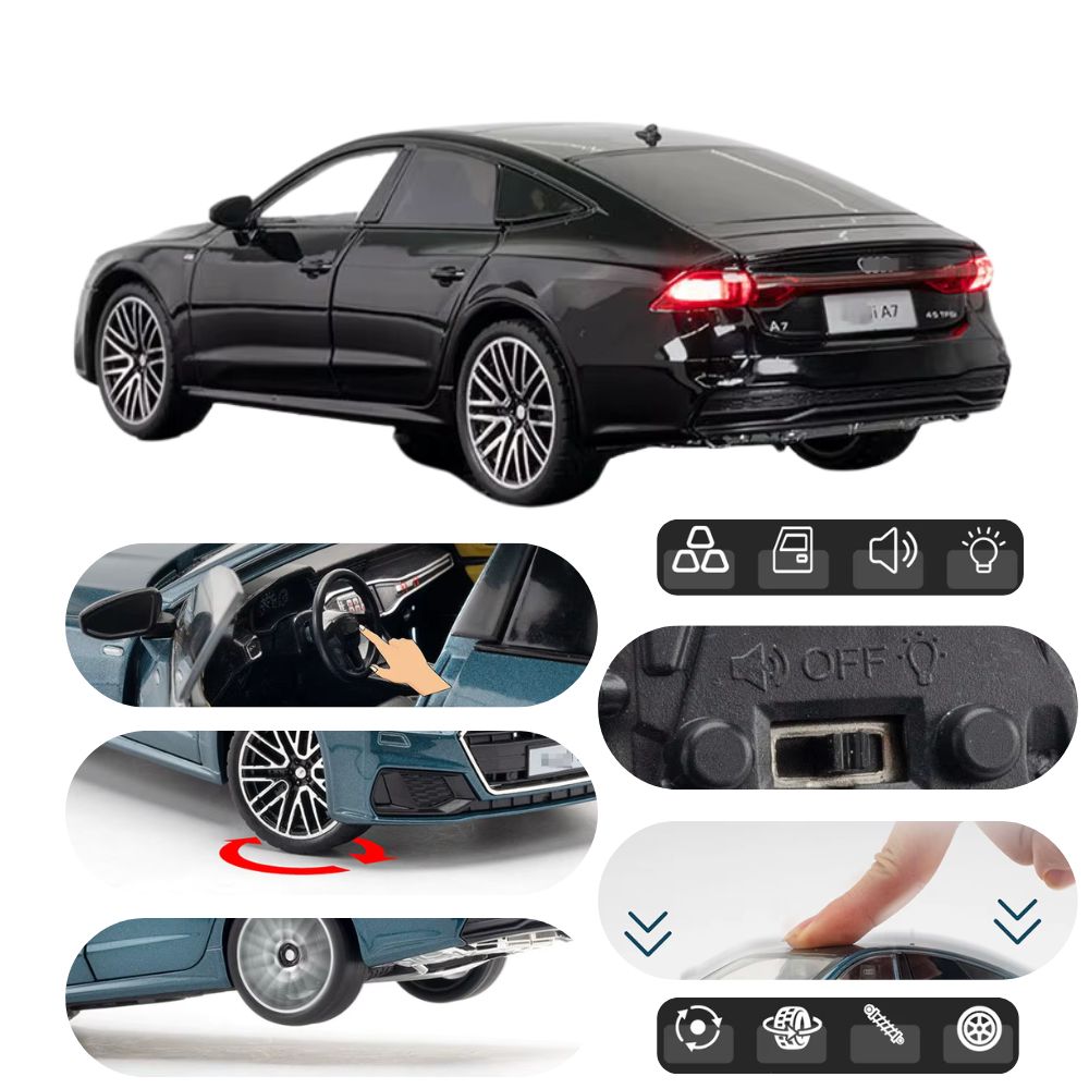 Erleben Sie das beeindruckende Audi A7 Modellauto, das nicht nur mit einer detailgetreuen Nachbildung des Audi A7 glänzt, sondern auch eine Vielzahl von faszinierenden Funktionen bietet.