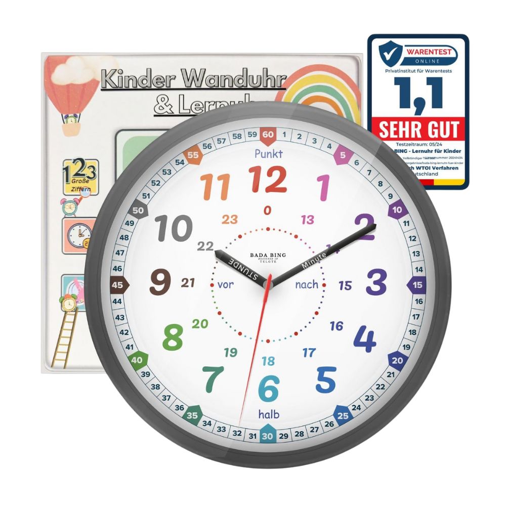 Bada Bing Montessori Wanduhr für Kinder mit bruchfeste Acrylglasscheibe: Lernuhr ohne Tickgeräusche