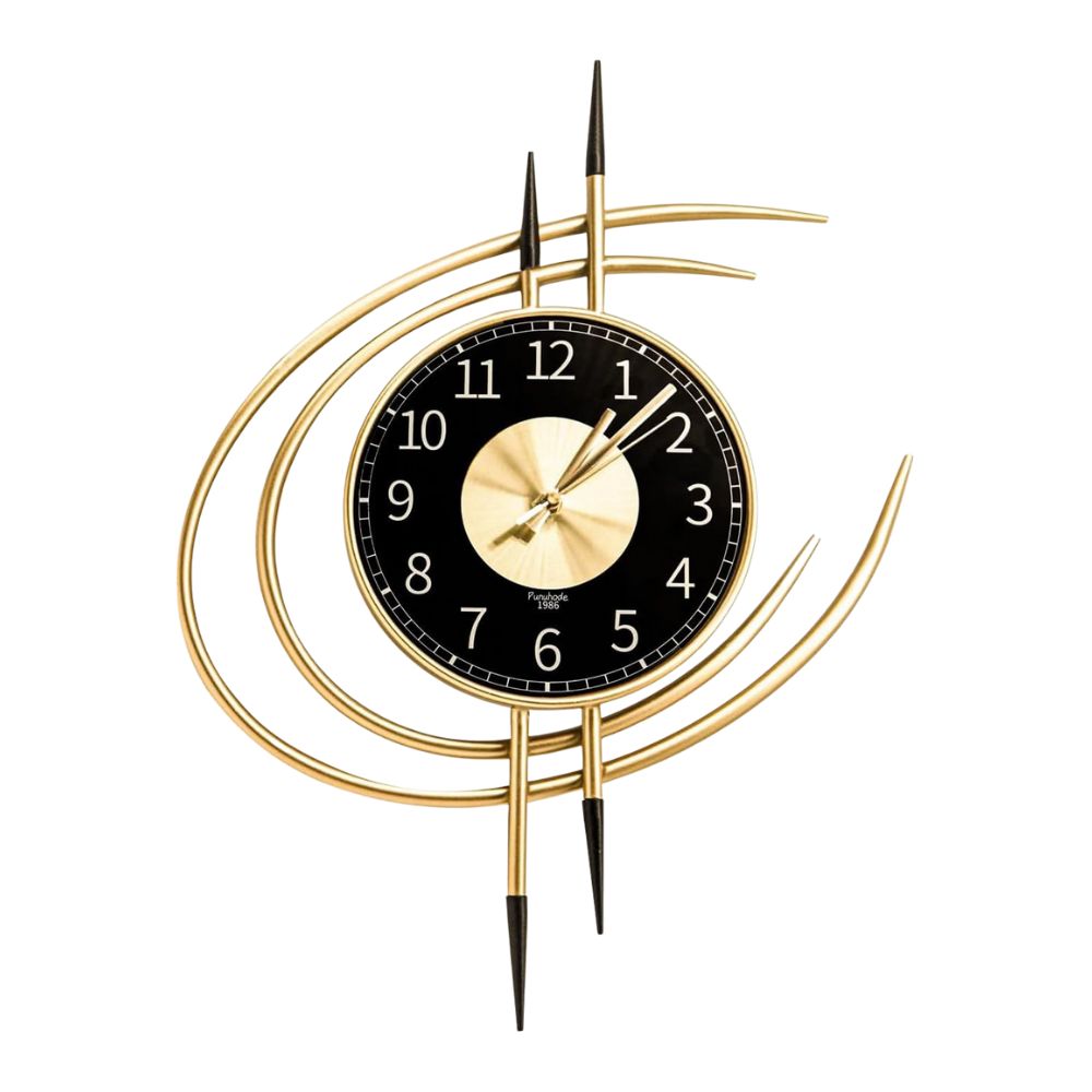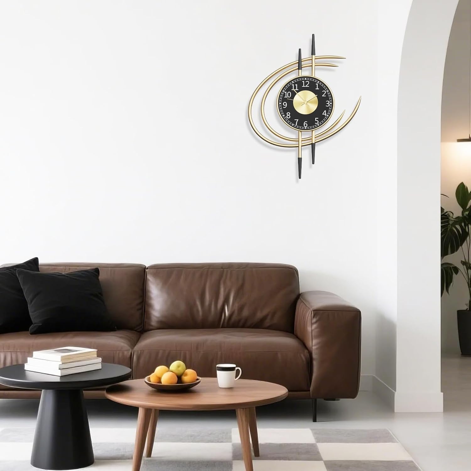 Große Moderne Dekorative-Wanduhr (54cm) ohne Tickgeräusche in Gold-Schwarz Design