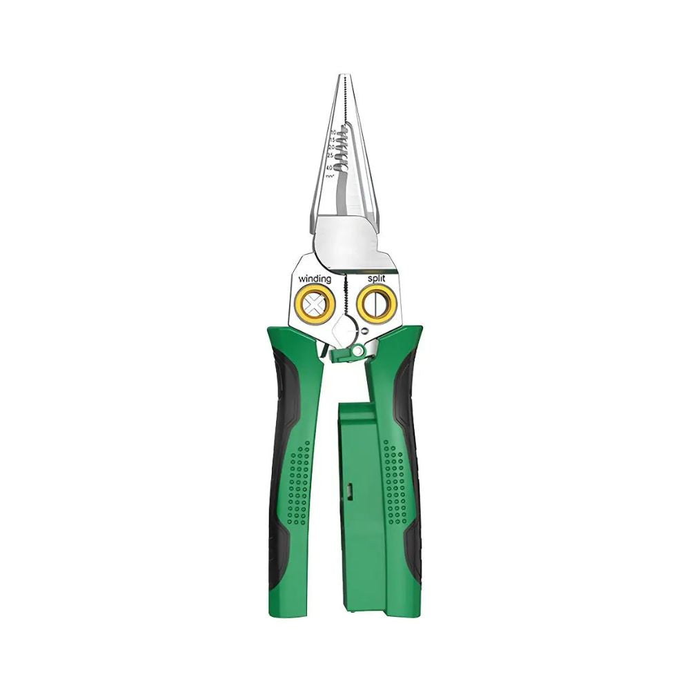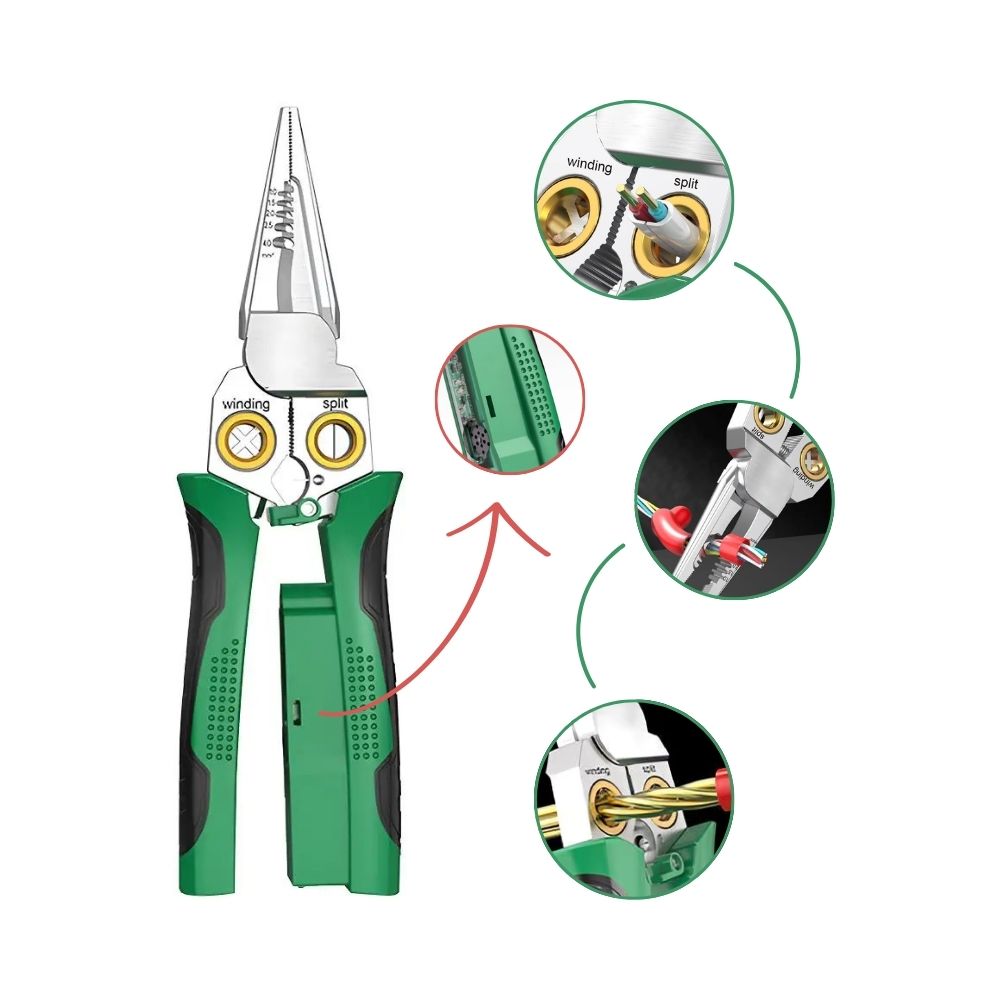 Dieses 8-in-1 Multifunktions-Werkzeug vereint alle wichtigen Funktionen, die Elektriker benötigen: Schneiden, Abisolieren, Kabel teilen, wickeln, öffnen, ziehen und mehr...