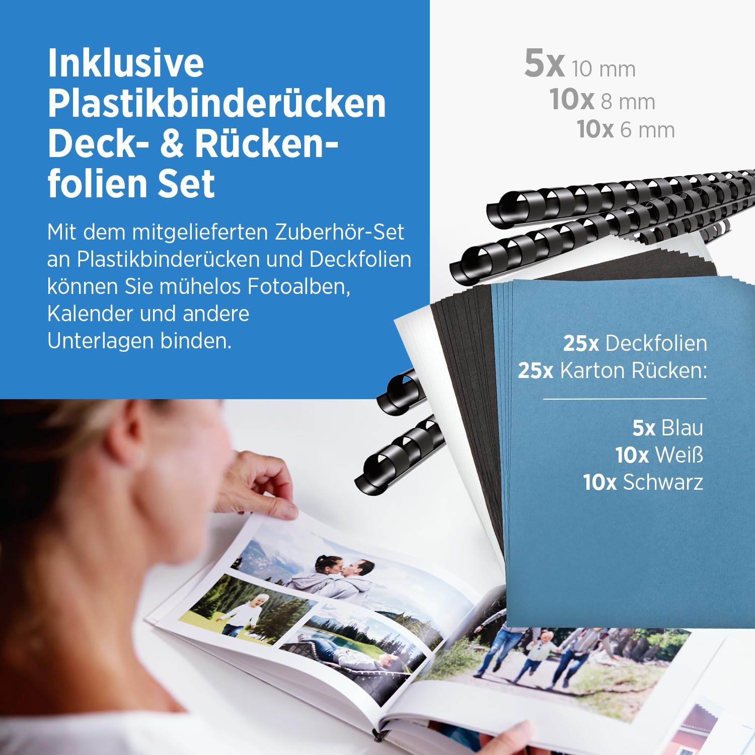 • Starter-Set inklusive: Mit Binderücken, Deckfolien und Rückenkartons - sofort startklar ohne separates Zubehör