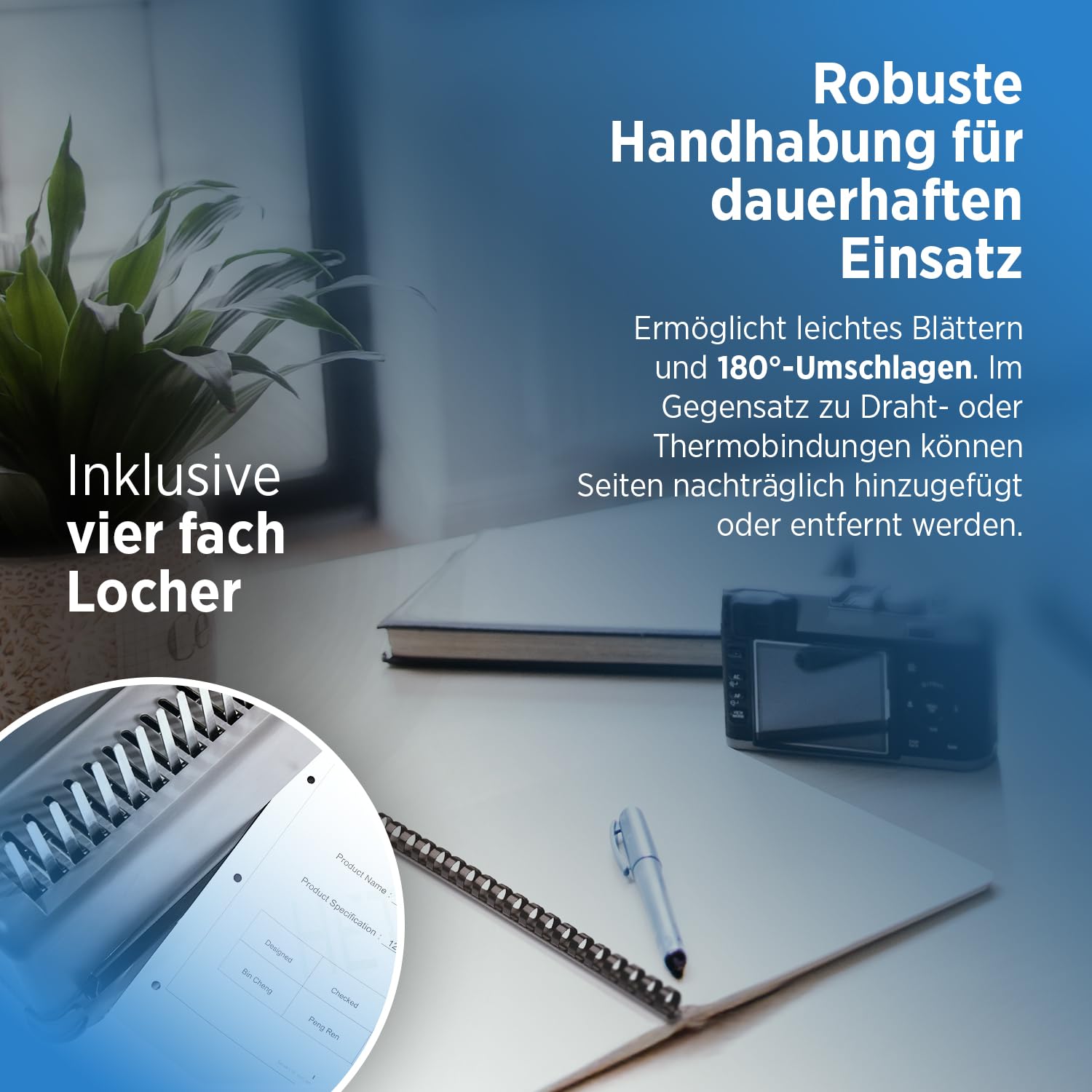 • Bis zu 350 Blatt binden: Ideal für umfangreiche Präsentationen, Kalender oder Fotobücher - 21-Ring-Lochung bis DIN A4