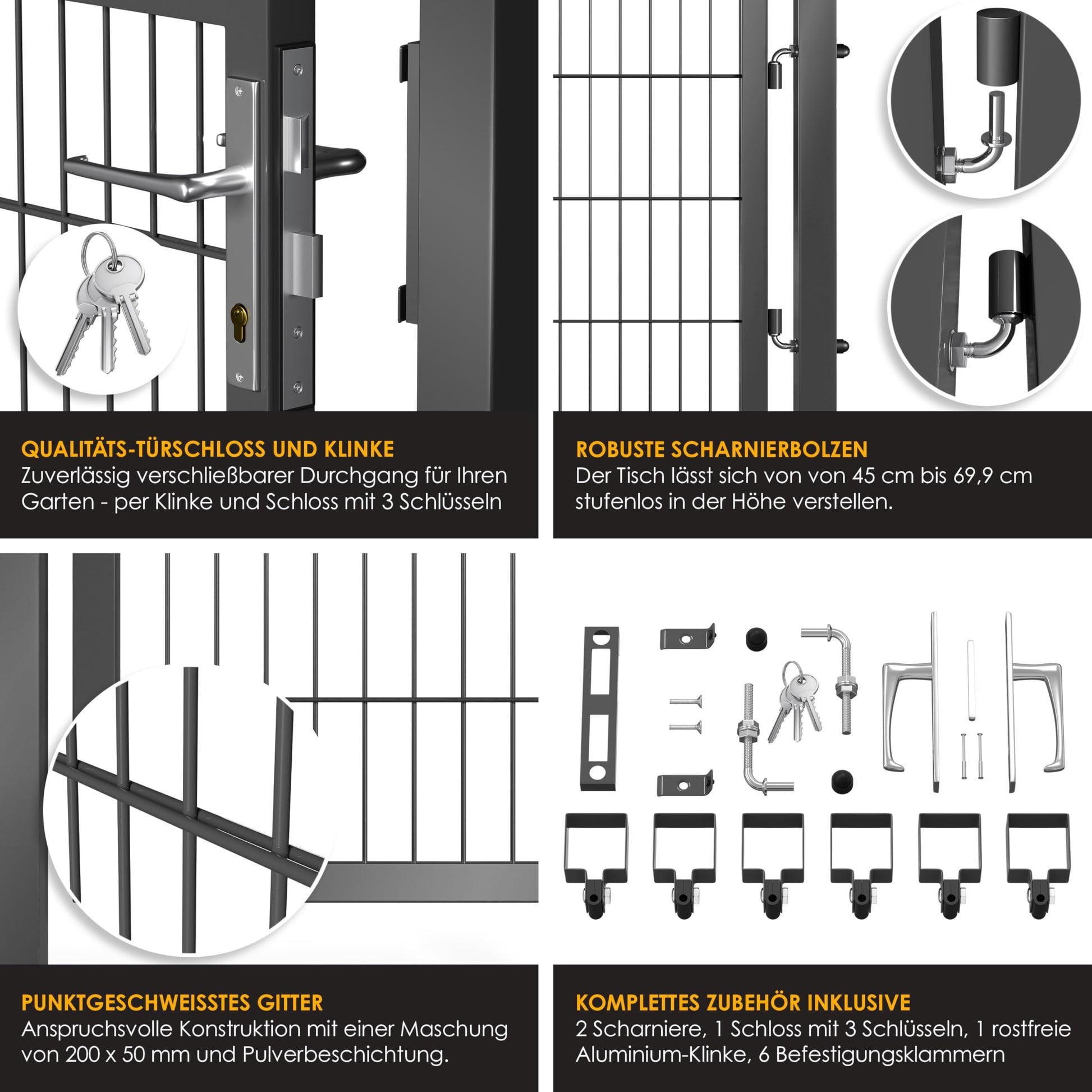 Sicherheit garantiert: Mit hochwertigem Türschloss und 3 Schlüsseln schützt das Tor zuverlässig vor Einbruch und verhindert, dass Kinder oder Haustiere unbefugt das Grundstück verlassen